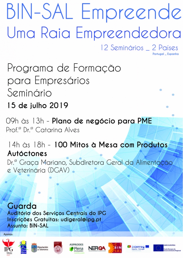 No âmbito do Projeto BIN SAL Empreende: Uma Raia Empreendedora, o Instituto Politécnico da Guarda organiza um Programa de Formação para Empresários, que vai decorrer no dia 15 de julho, no auditório dos Serviços Centrais do IPG, das 9h as 18h.